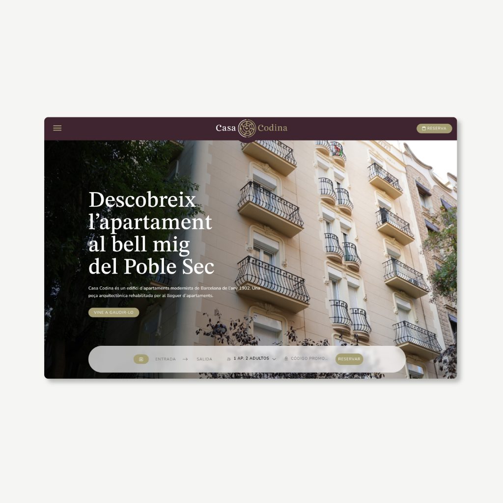 Casa Codina és un edifici modernista de Barcelona de l’any 1902. Una peça arquitectònica rehabilitada per llogar apartaments buscava una nova identitat que no deixés de banda el seu valor històric. L’espiell d’espiral o espiell és un tret característic de les portes modernistes de principis de segle. Li abracen dos C en referència al nom de l’edifici i es modifica la tipografia amb les terminacions de l’espiral. Se simplifica un símbol del modernisme català associat a l’habitatge en contrast amb una tipografia amb aires clàssics i terminacions orgàniques.